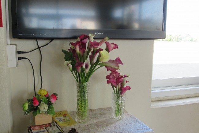 地域の方から、こんなに素敵なお花をたくさんいただきました。校舎のあちこちに飾ってあります。