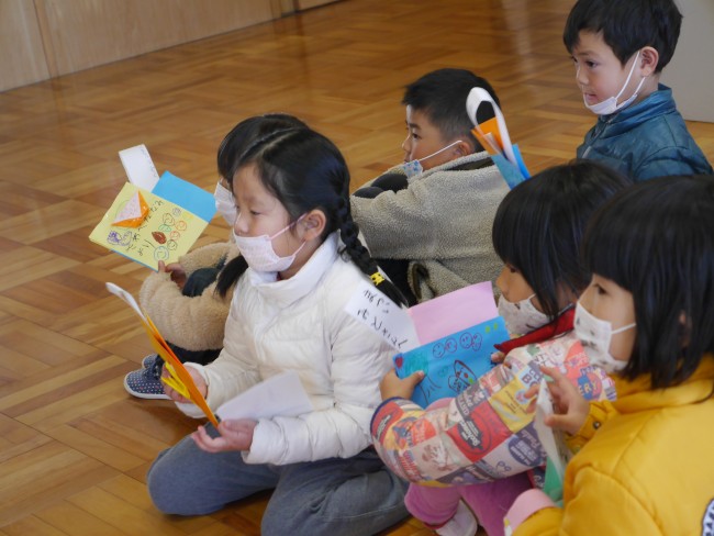 昨日は、4月に入学予定の園児と保護者が来校しました。園児は、1年生のリードで楽しく過ごしました。