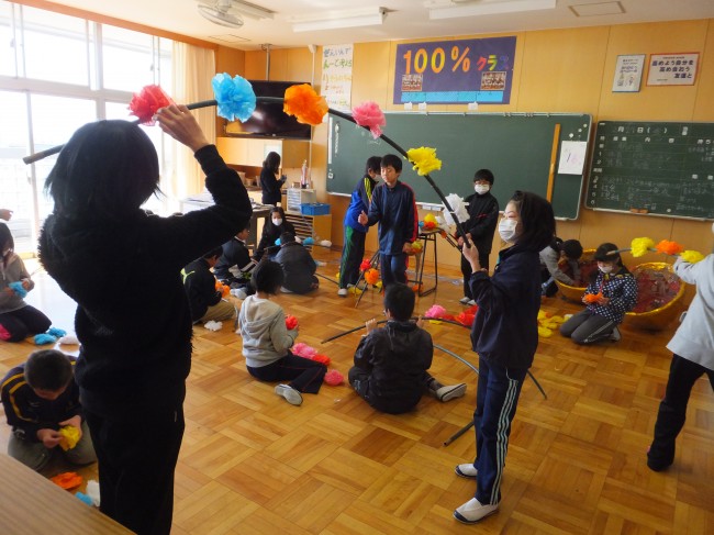 六送会の準備 2015/02/27 3月3日(火)に行われる「六年生を送る会」の準備が着々と進められています。5年生と2年生が花のアーチと飾りを準備していました。6年生がほっかりするような六送会になりそうです。