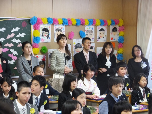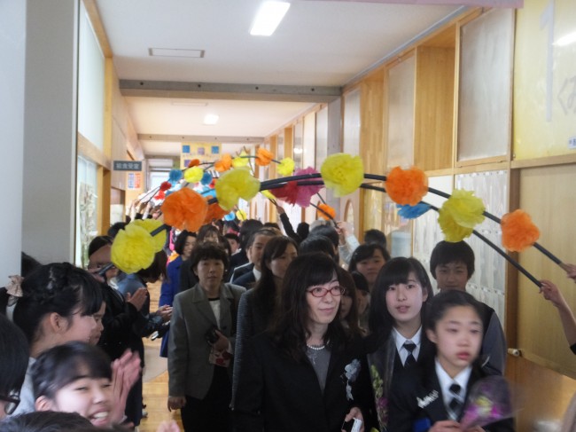卒業式の後、学級で担任の長嶋先生のお話を聞きました。そして、保護者の皆さんにお礼の歌と言葉を届けました。式の時にたくさん涙を流した後なのに、またまた涙でした。最後は、5年生と職員で見送りです。笑顔の6年生を見てよい卒業式ができたなと思いました。6年生の保護者の皆さん学校への御理解と御協力ありがとうございました。本日の卒業証書授与式開始前の体育館、心地よい緊張感と静寂の中で卒業生が入場できたのは、保護者のみなさんのすばらしいマナーのおかげです。
