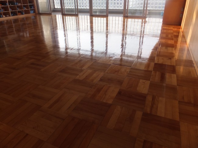 教室のワックス塗りを、1日(土)に行いました。教室の床がピカピカになりました。