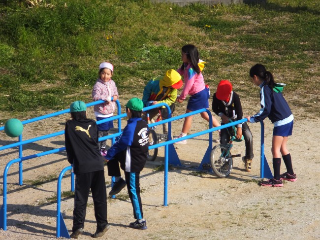 今朝は風もなく、春らしい穏やかな日和となりました。子どもたちは元気に朝遊びをしています。7時55分のチャイムと同時に教室へ向かいます。