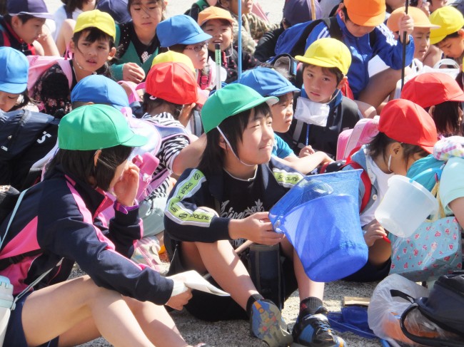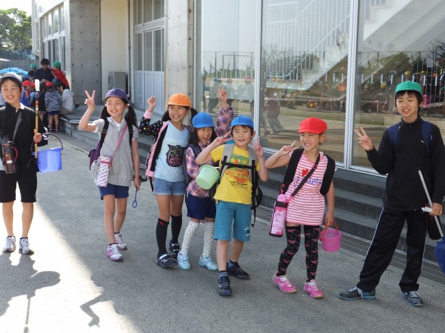 本日は子どもも職員も楽しみにしていた「潮干狩り遠足」でした。はじめの会のの後、グランドに隠されたカプセルを1・2年生が協力して見つけ出し、見つけた班から出発しました。途中チェックポイントやミッションポイントを班で協力してクリアーしていきました。保護者のボランティアさんや地域の方に気持ちよくあいさつをして海岸に到着しました。ボランティアの皆さんありがとうございました。