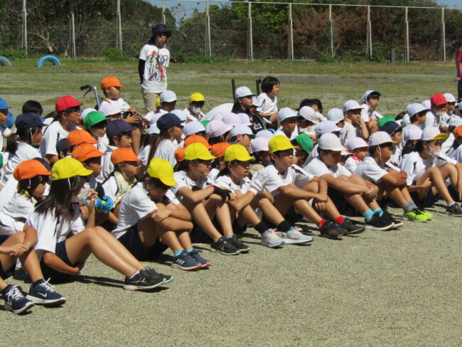 5・6年生の有志の草取りや職員の草刈りをしても、グランドの草の勢いは収まらず、次なる手立てが「赤白対抗草取り対決」。体育委員会が中心となって昼休みに行われました。子供たちが一斉に草取りをすると、いつも以上にパワーがあふれ、草取りがはかどります。短い時間ではありましたが、ずいぶんグランドの草を減らすことができました。「自分たちの学校を自分たちの手できれいにしていく」そんな御前崎小の子供たちのほっかりを見つけることができました。