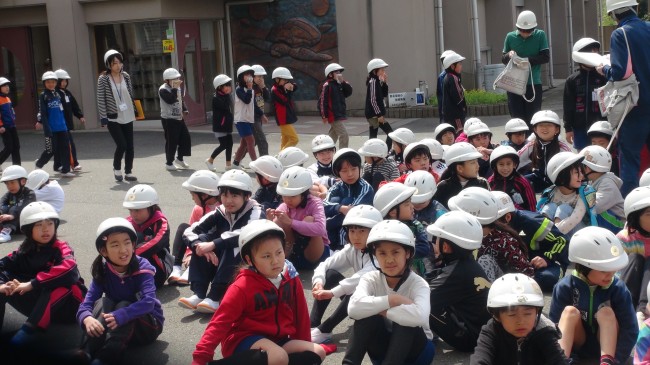 避難訓練・通学区会 2015/04/14 先週、地震を想定した避難訓練と、通学区会・一斉下校を実施しました。避難訓練は、みんな黙ってあいさつ広場に集合することができました。 通学区会では、安全に登下校するためにどんなことに気をつけたらよいかなどが話し合われました。一斉下校は雨の中、傘を持った子どもたちの行列ができましたが、雨の日の様子を知ることもできました。