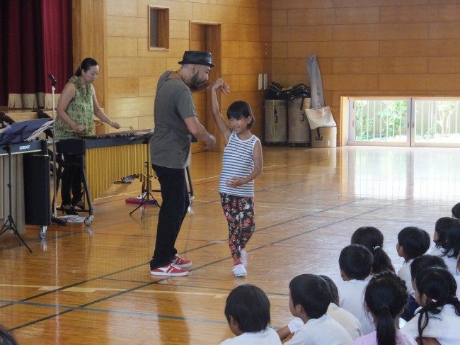 音楽鑑賞会 2014/10/01 4時間目に音楽鑑賞会を行いました。マリンバなどを使い、ジブリやディズニーなどの演奏を聴きました。アフリカの聞き慣れない打楽器に触れたり、一緒に手拍子や踊ったりして楽しい時間をすごしました。「反応が良くて素敵な子どもたちですね」と誉めていただきました。