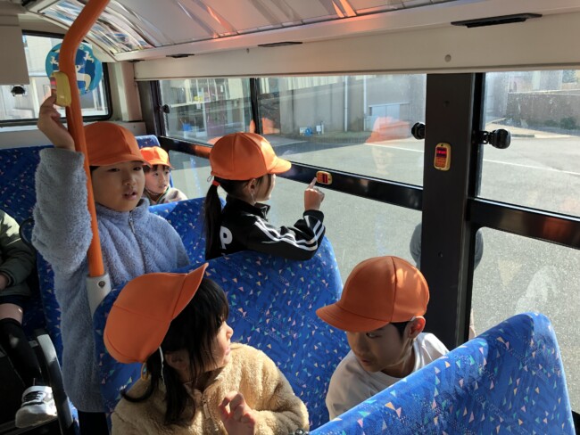 2年生が、バスの乗り方教室を行いました 2024/12/06 2年生が生活科の勉強で、「バスの乗り方教室」を行いました。普段バスに乗る機会が少ない子供たちにとって、身近で見るバスには、たくさんの不思議や発見があるようです。一生懸命話を聞いて、探して、見つけて、楽しくバスの乗り方を勉強していました。