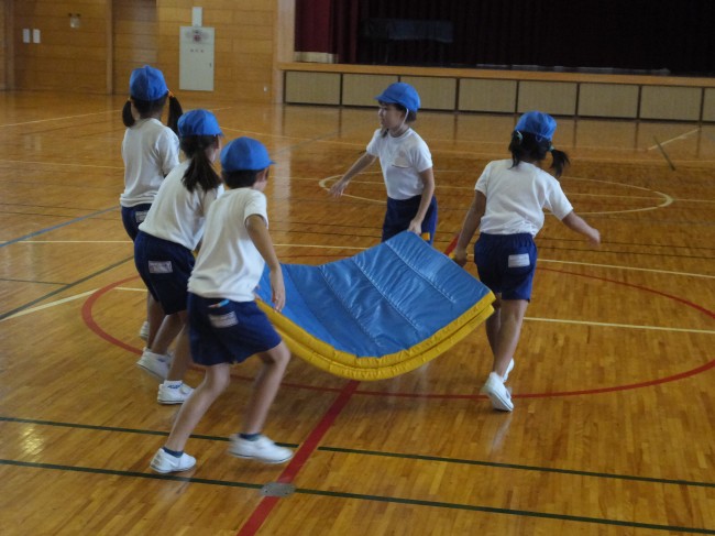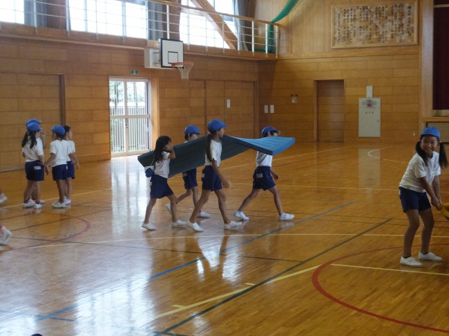 2年生(体育) 2014/09/04 5時間目の体育の時間にマット運動を行いました。号令で一斉にマット引きの準備に取りかかり、引き終わったら、ゆらゆら船のように揺すっていました。その後は、マットにごろごろ回転です。手足を伸ばして真っ直ぐ上手に回転していました。2年生がたくましくなってきています。