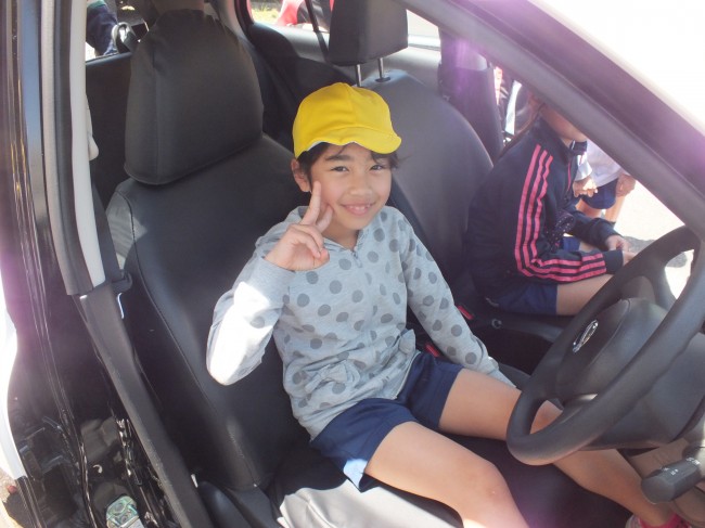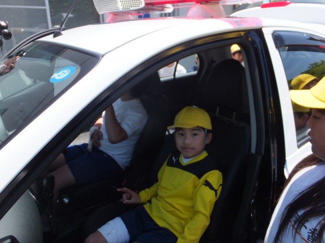 次に、防弾チョッキの説明がありました。防弾チョッキを着たい子は、着させてもらいました。 今度は、パトカーに乗せてもらいました。