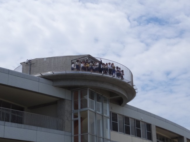 4時間目 2014/04/28 1年生と6年生が体育の授業で、リレーの練習をしていました。6年生の真剣さが伝わってきます。1年生は、隣を意識しすぎて滑って転んでる子もいました。これから、鍛えます。3年生が天空広場で、方位の勉強をしていました。