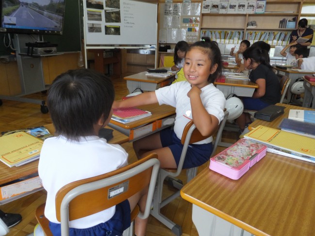 5時間目(3年2組) 2014/07/01 社会科で「御前崎市」の学習をしました。グーグルマップを使っての授業だったので、知っているお店や場所がでると「知ってる。行ったことある。」と口々つぶやいていました。御前崎小のまわりと比べて、違っている広い道が通っていたり、川が流れていたりすることを確認し、これから調べてみたい疑問を一人ひとりがまとめました。