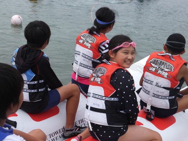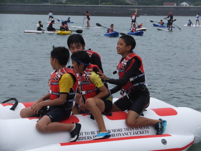 12日(火)の午前中、6年生のマリン体験が行われました。カヌーと、スタンドアップパドル、バナナボートの体験をしました。003