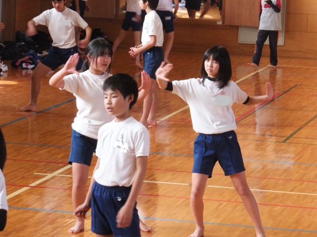 6年生から5年生へ(御小ソーラン) 2014/02/28 放課後、6年生が5年生へ御小ソーランの完全なる引継ぎを達成するために、伝達の会を行いました。5年生の様子を見て、6年生が個別に教えます。また、5年生の真剣な様子にこたえ、6年生も見本を見せました。6年生に追い付け5年生!