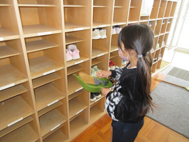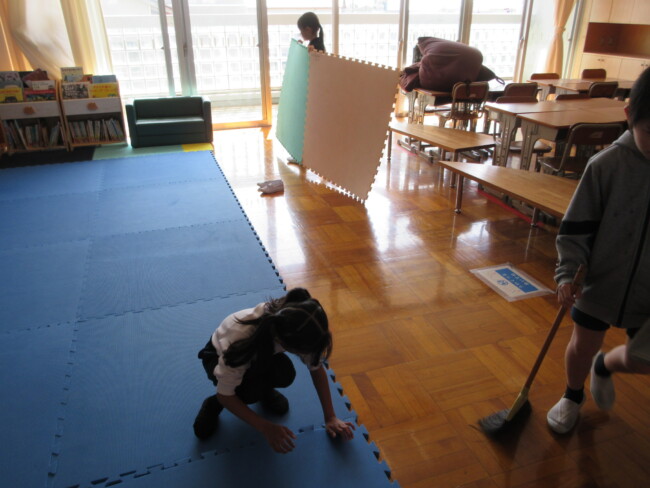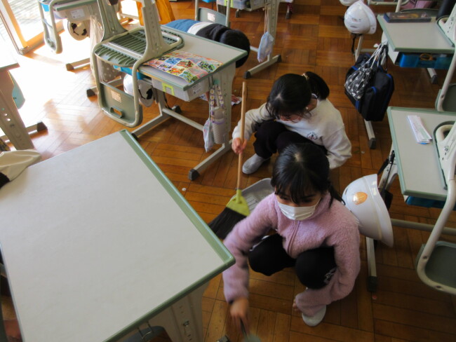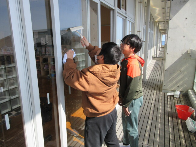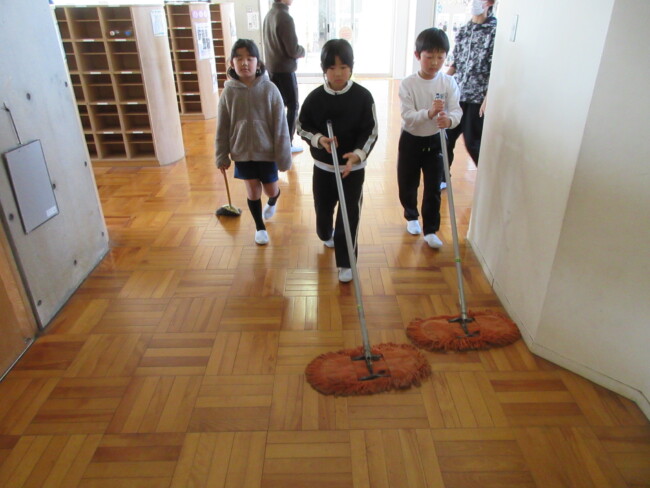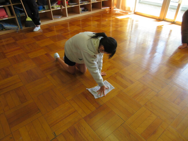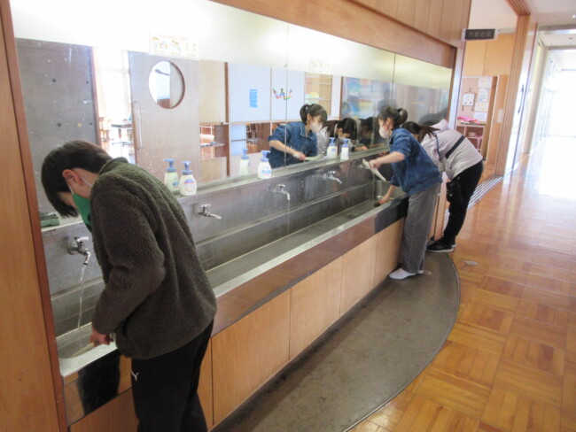普段なかなかできない場所を見つけて隅々まで掃除する姿や、時間をかけて丁寧に掃除する姿が見られます。全校で気持ちを一つにして取り組んでいます。