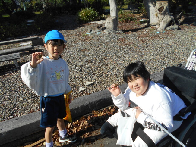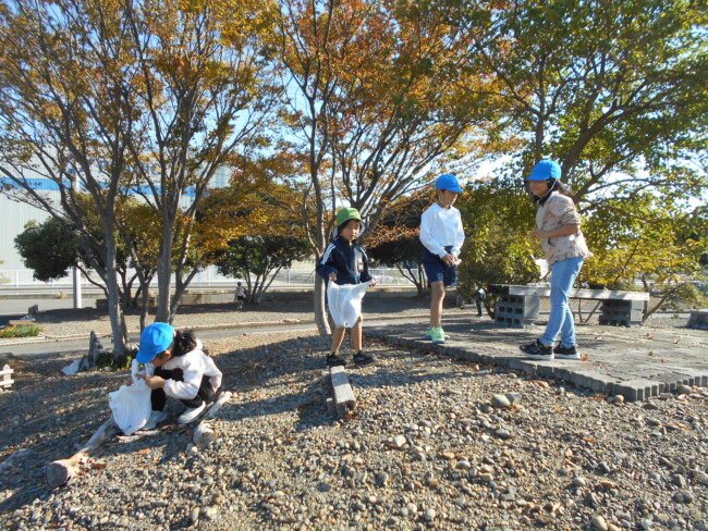 エコパークで秋探し 2025/11/19 1年生がエコパークへ秋探しに出かけました。今回は白羽のんのん英育園の年長さんたちと一緒に活動をしました。1年生は見つけた秋のものを使って、秋ランドを開く予定です。