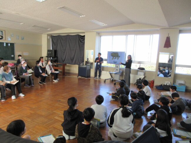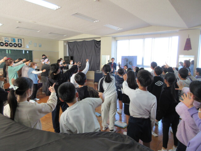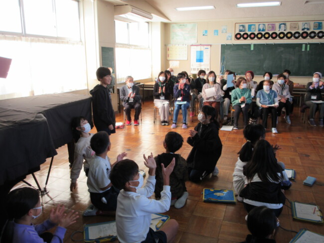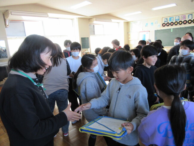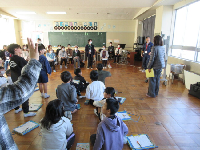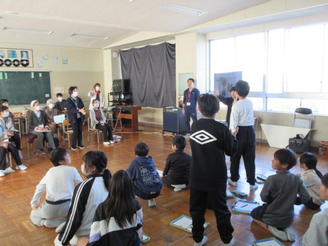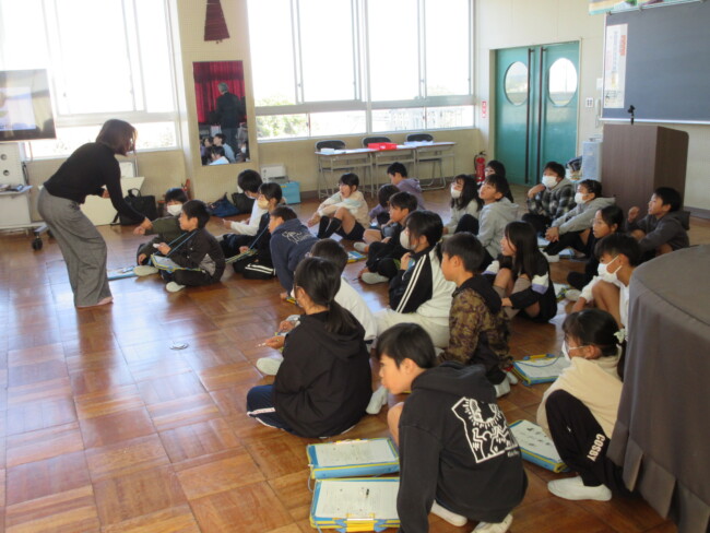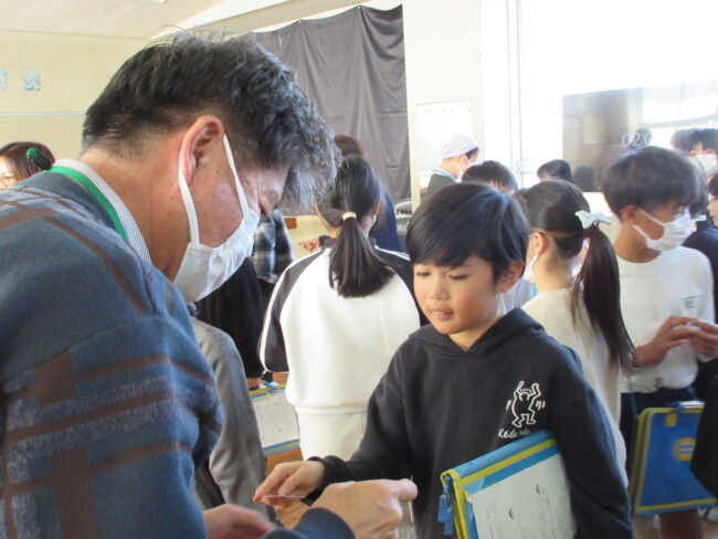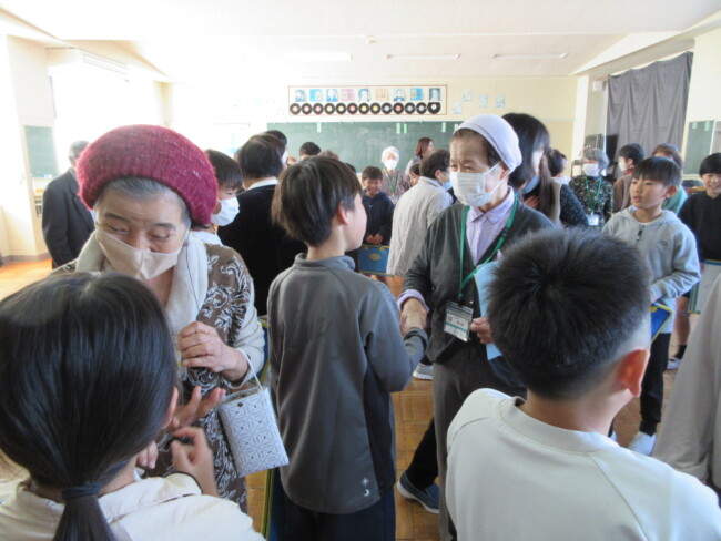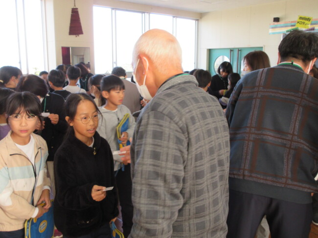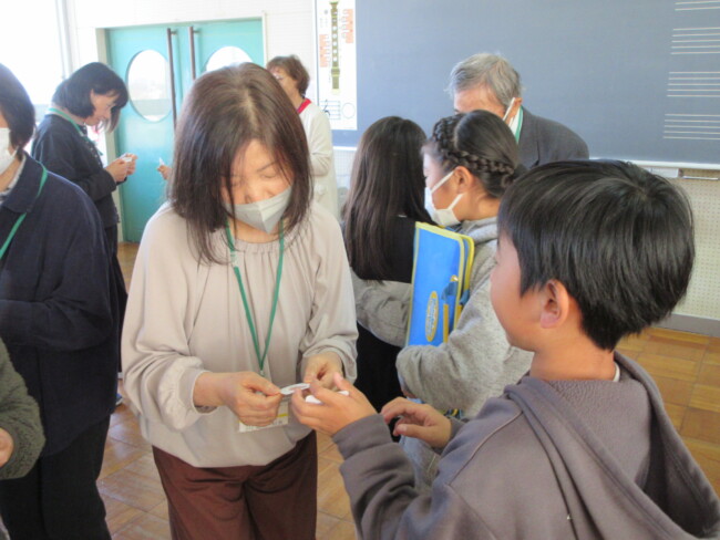 4年生は、シニアスクールの皆さんと一緒に、英語学習を行いました。簡単な自己紹介の言葉を練習して、たくさんの方と交流ができました。英語でじゃんけんキングも行い、笑顔や元気な声が一時間があっという間に過ぎました。