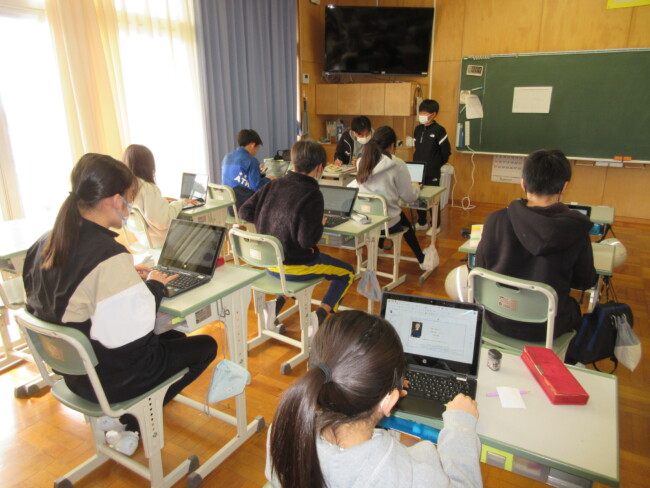 3年生は、音楽の授業でグループ発表をしていました。その後歌も歌っていました。