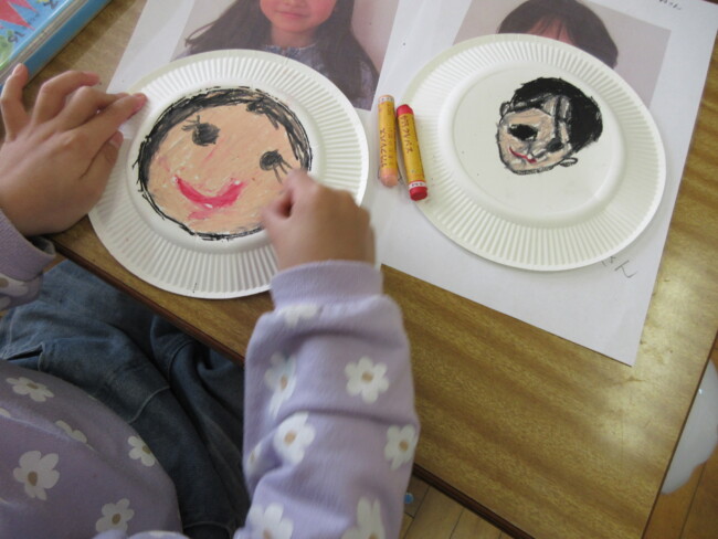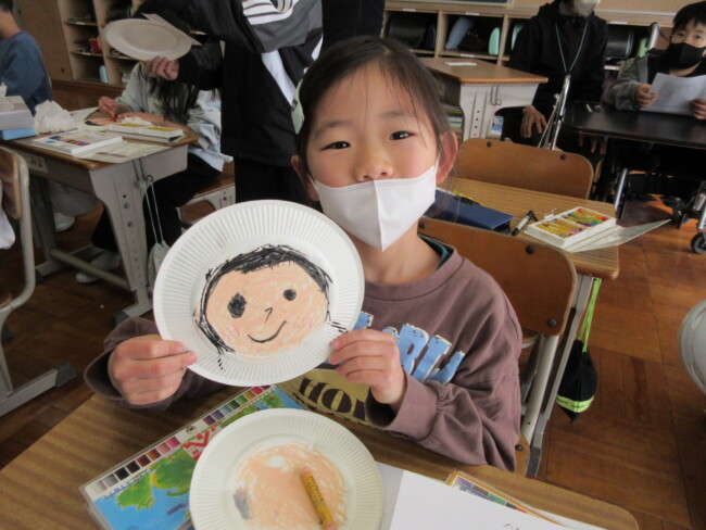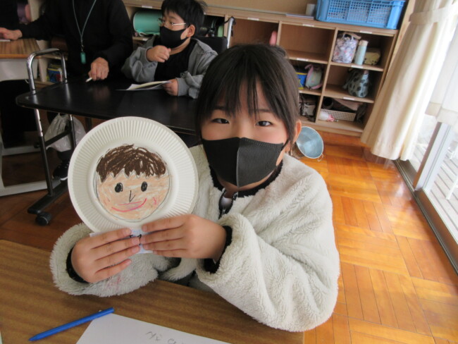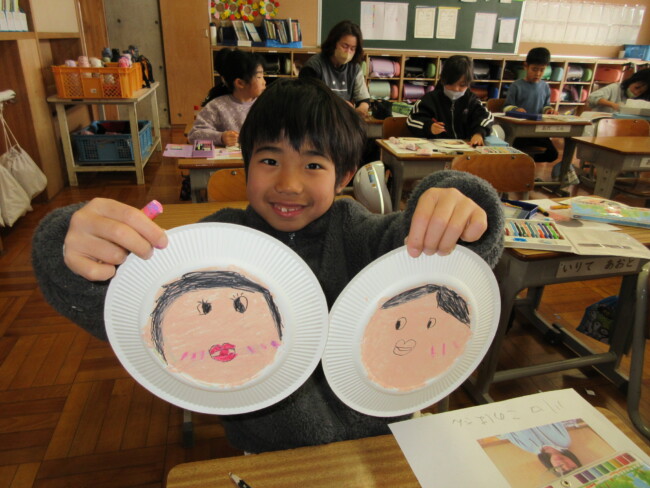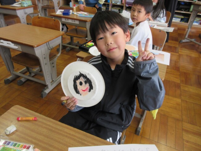 1年生は似顔絵を描いていました。