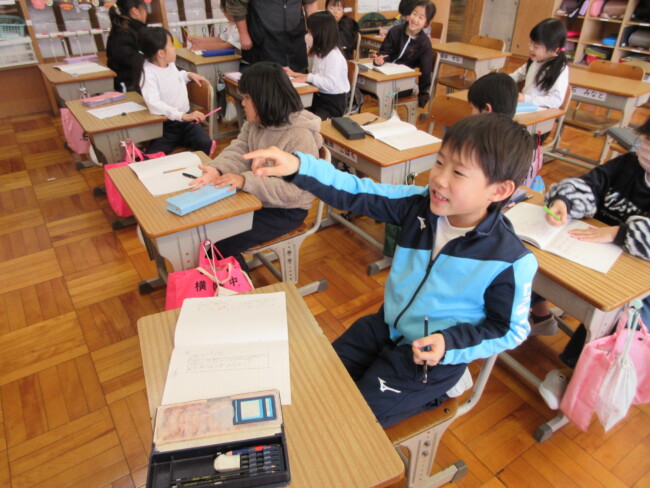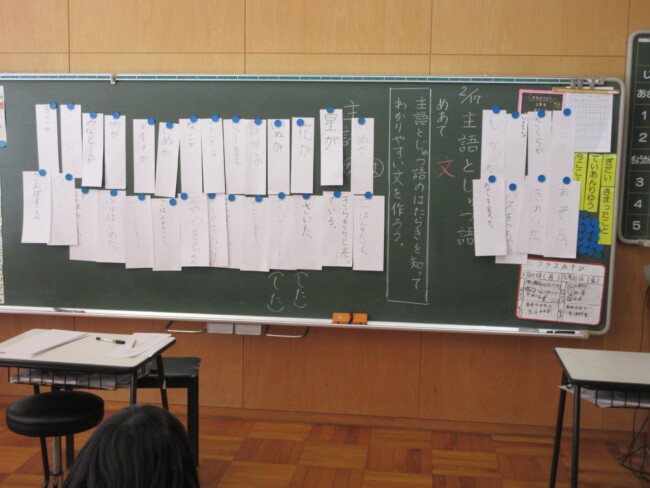 2年生国語「主語と述語」の授業 主語と述語のある文づくりに、子供たちは一生懸命取り組んでいました。