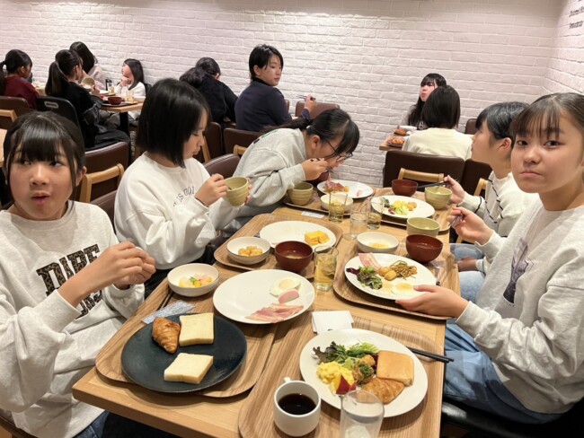 6年生は体調不良者なく全員元気に2日目を迎えました。美味しい朝食ビュッフェで腹ごしらえをして、上野に向けて出発しました。
