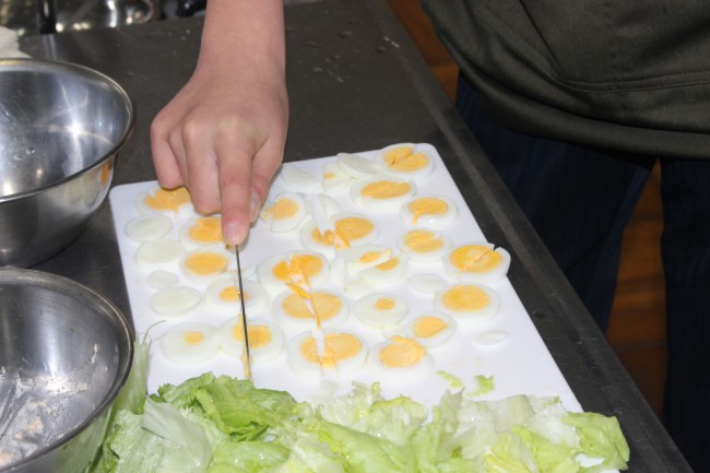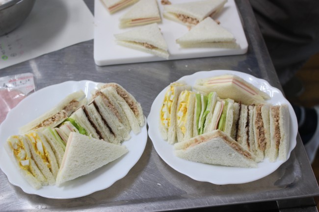 2日(木)、6年1組が「先生ありがとうの会食」を開いてくれました。4時間目にサンドイッチ作りをして、赤組の教職員と会食をしました。