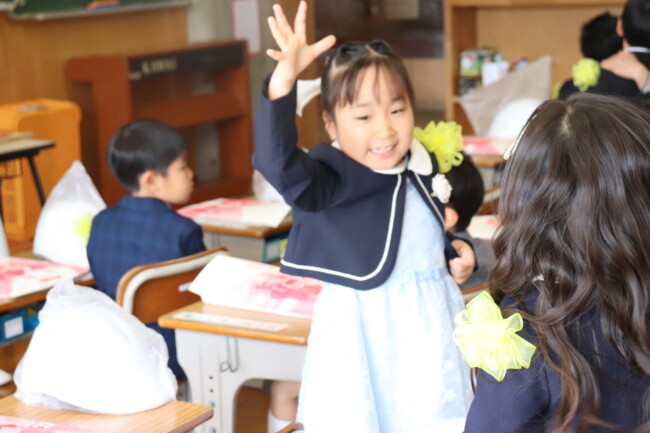入学式、初めての小学校の教室 2025/04/08 本日、入学式が行われました。体育館で担任の先生から名前を呼ばれると、とっても大きな声で返事ができた1年生。とっても立派でした。1年生のきらきらした目が更に輝くような小学校生活を送っていけるように、一緒に頑張りたいと思います。