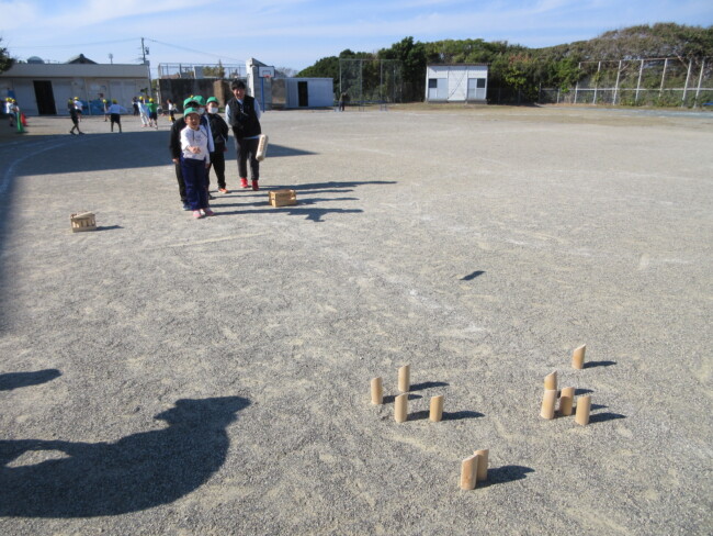 寒い冬でもみんなで楽しく体を動かそう! 2025/11/21 健康委員会の企画で、運動イベントが始まっています。本日は5年生が参加して、モルックやドッジボール、ボッチャを楽しみました。少人数で行うドッジボールは、いつも以上にスリルあるゲームになっていました。来週は4・3年生の番です。楽しみですね。 あいさつ広場では、4年生がクラス遊びで「しっぽとり」を行っていました。