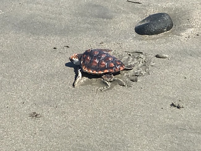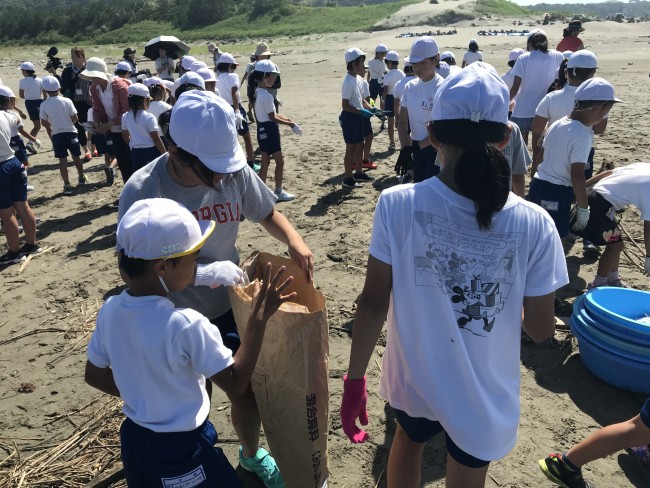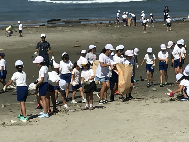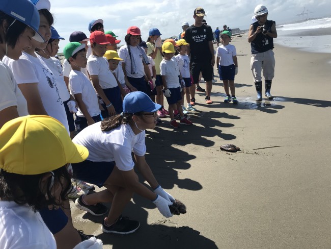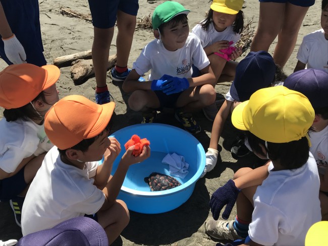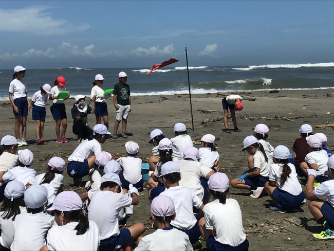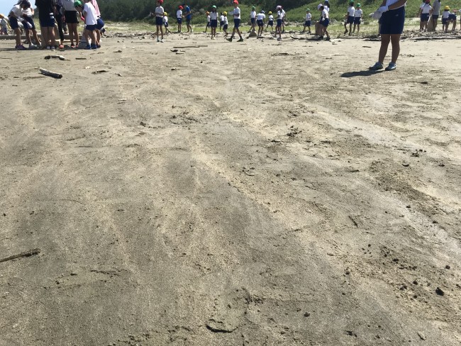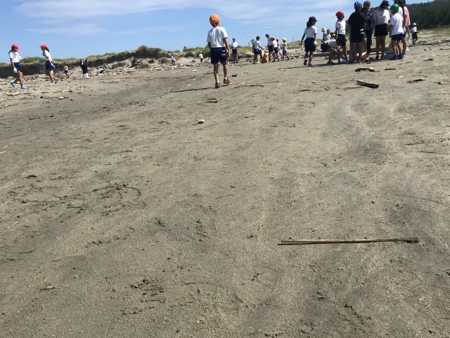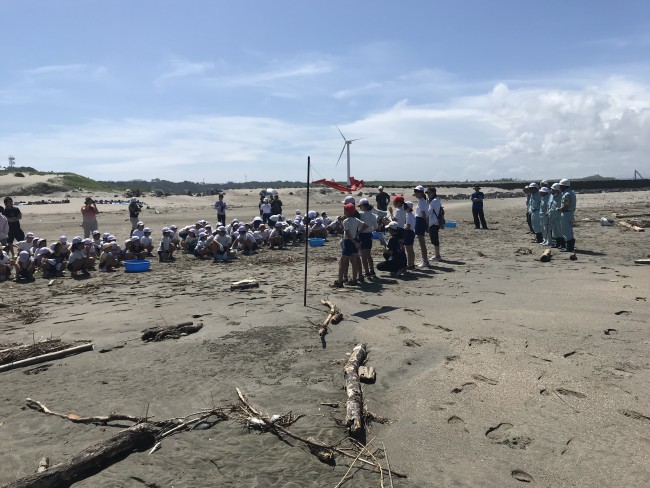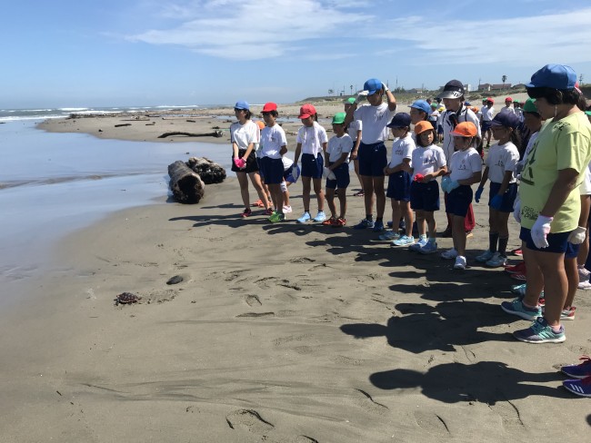 7月9日(月)に御前崎小学校の伝統行事、アカウミガメの放流を行いました。昭和52年よりスタートしたアカウミガメの飼育活動は40年を超えました。今年は、受け入れた20頭のうち16頭を放流することができました。これまでにエサの種類や飼育方法の改善を進め、多くのカメを放流できるようになってきました。保護監視員の皆様、エサのシラスを提供してくださった保護者の皆様、カメの飼育に御協力いただいた保護者・地域の皆様、施設設備の整備に関係してくださった皆様、飼育指導にたずさわってくださった方等、たいへん多くの方に御協力を頂きました。本当にありがとうございました。