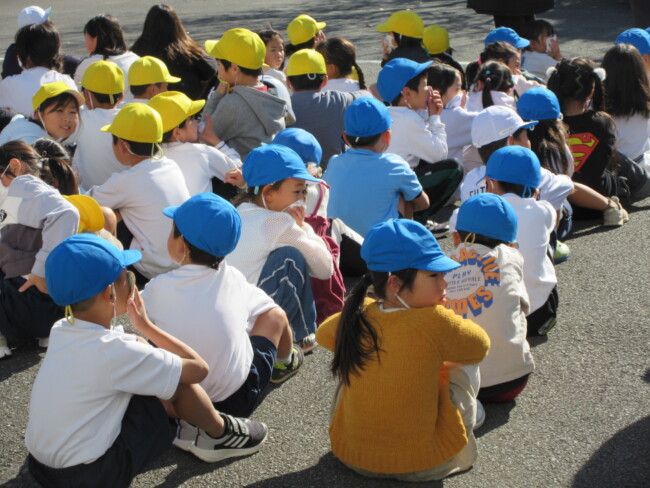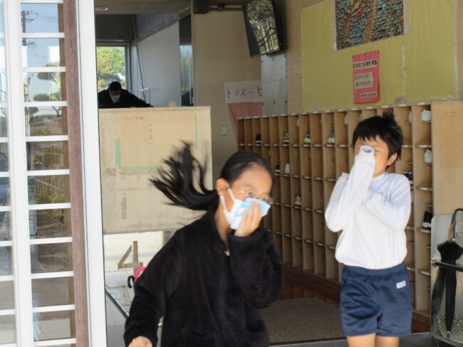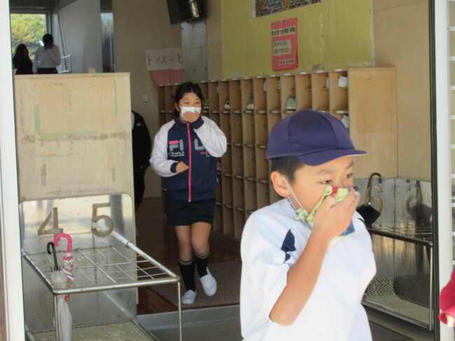 火災から自分たちの身を守る避難訓練 2025/11/20 本日、火災避難訓練を行いました。昼休みの訓練でしたが、子供たちは煙を吸わないようにハンカチや衣服を口にあて、それぞれ避難をすることができました。