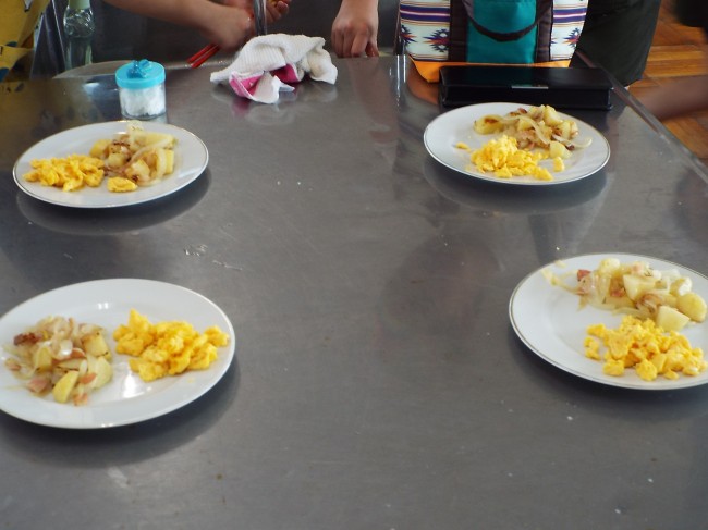 16日(月)の3・4時間目、6年1組は家庭科の授業で、朝食のおかず作りをしました。
