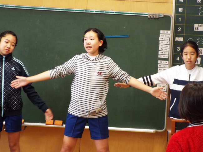 17日(火)、朝活動の時間、各教室に分かれて応援練習が始まりました。6年生が各教室に行き、教えました。