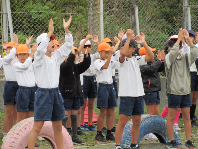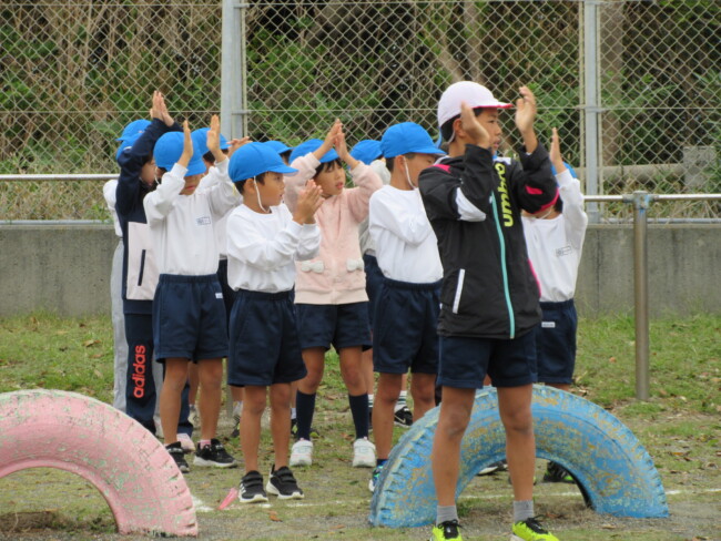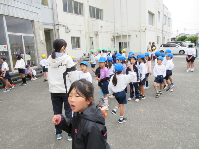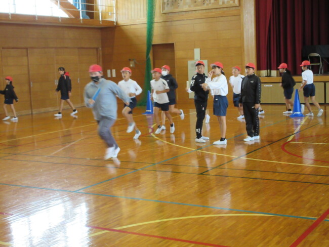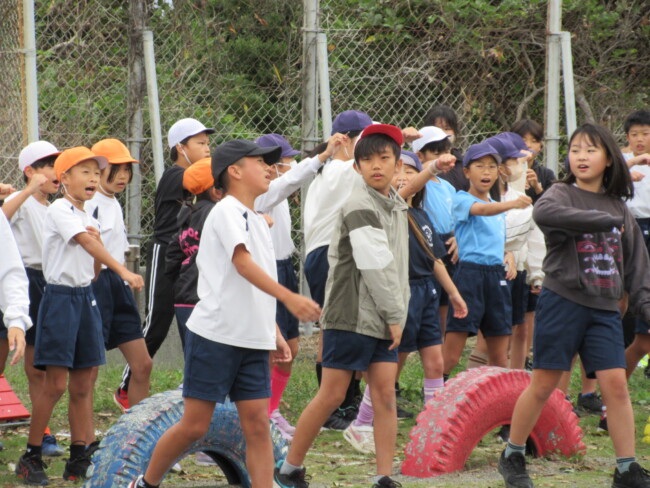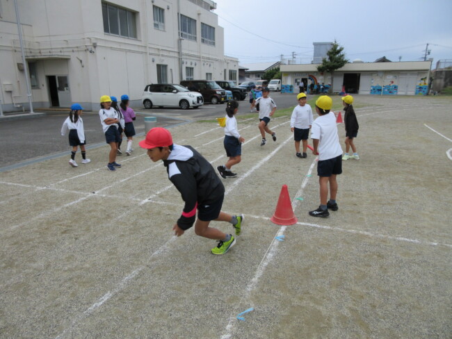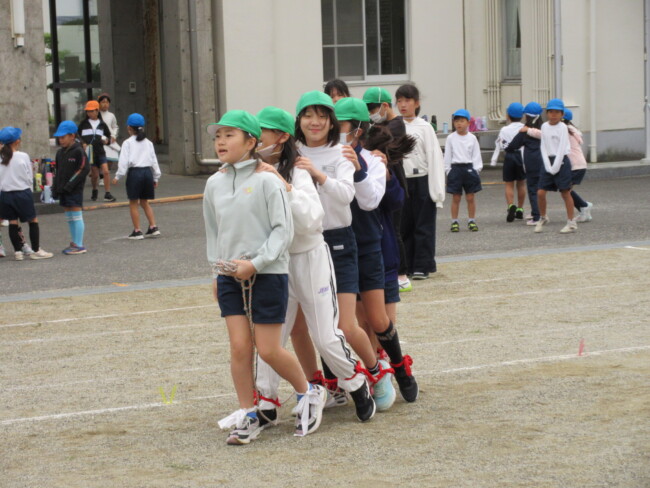 足元がおぼつかなかった5年生のムカデもずいぶん上達しました。6年生のリレー練習もバトンパスを大切に、真剣に取り組んでいました。