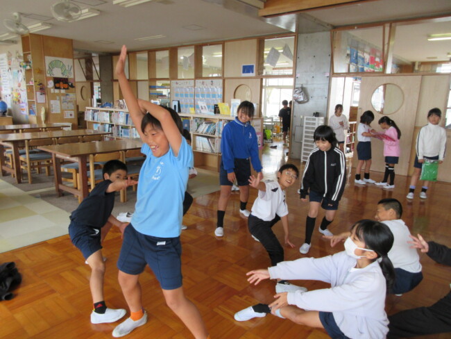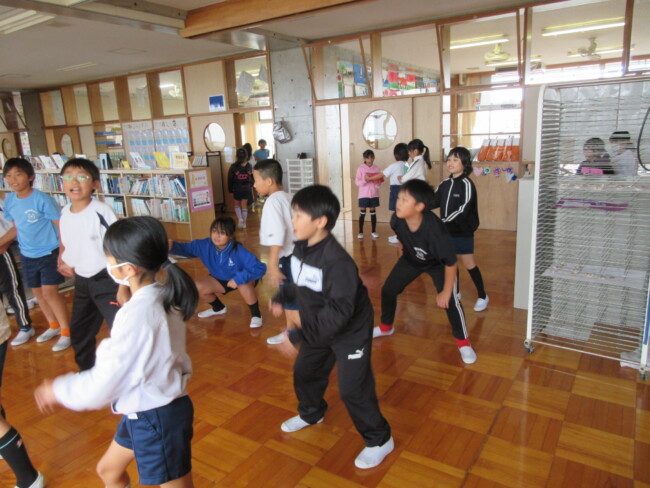 昼休みはあいにくの雨で校舎の中での練習になりました。4年生は自主的にソーランの練習をしていました。