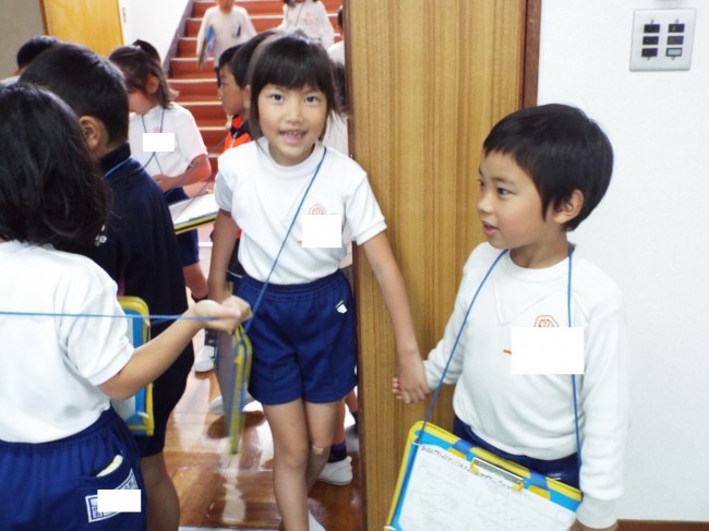 17日(火)3・4時間目に1・2年生でペアになって、学校探検をしました。