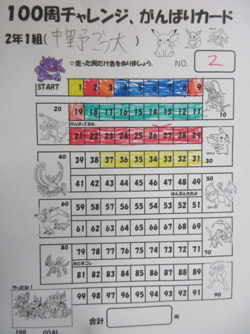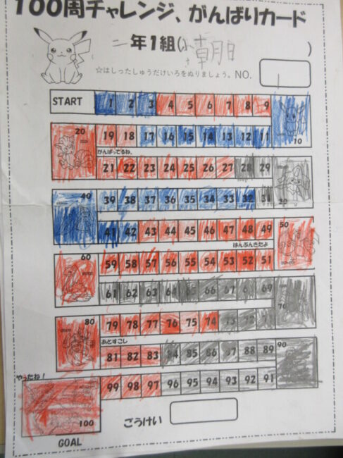 2年生は、3学期から「100周チャレンジ」を続けています。毎日グランドを走って、みんなが100周走り切ろう!と挑戦・努力を続けています。中には300周を超えている人もいます。みんなで声を掛け合いながら全員の目標達成をめざす姿は、まさに「挑戦・努力・認め合い」のほっかりいっぱいみさきっ子の姿です。