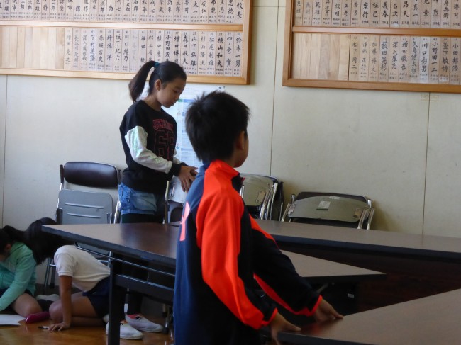 並んでいる1年生が、「かけ算の問題は出ないよね」と心配そうに聞いていたので、「1年生には出さないら」と答えましたが、写真を見るとかけ算の問題もあったようです。1・2年生は脱出できたのでしょうか?