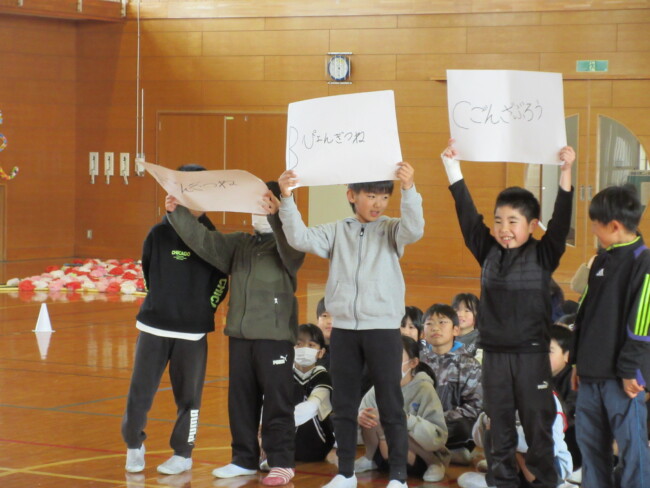 6年生ありがとう!中学校でも頑張ってください! 2026/02/24 本日6年生を送る会がありました。御前崎小学校のリーダーとして活躍した6年生に感謝の気持ちを込めて会を開催しました。 5年生、すてきな会を企画してくれてありがとう。御前崎小は君たちにたくす!