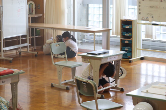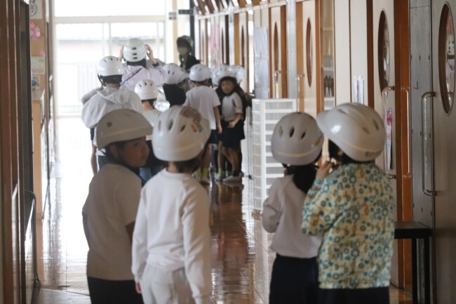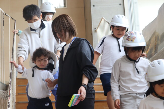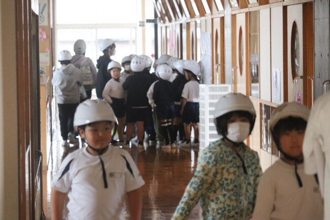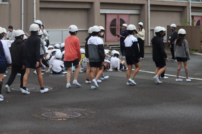 0415 地震想定の避難訓練 2026/04/15 本日、教室から避難場所へ移動する避難訓練を実施しました。訓練では、「お(押さない)・は(走らない)・し(しゃべらない)・も(戻らない)」を合言葉に、安全を確認しながら行動しました。一人ひとりが落ち着いて行動することの大切さを学ぶ、有意義な機会となりました。