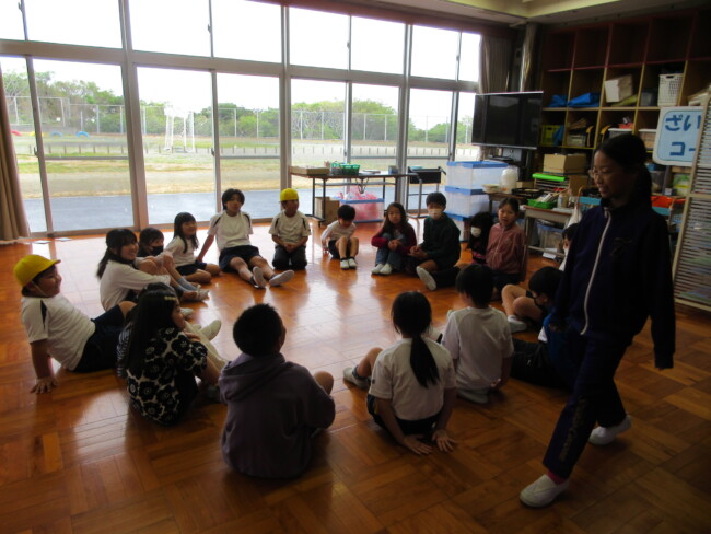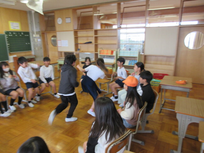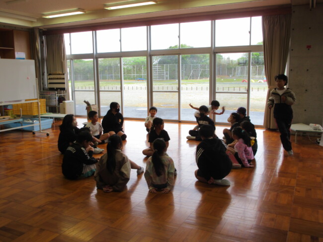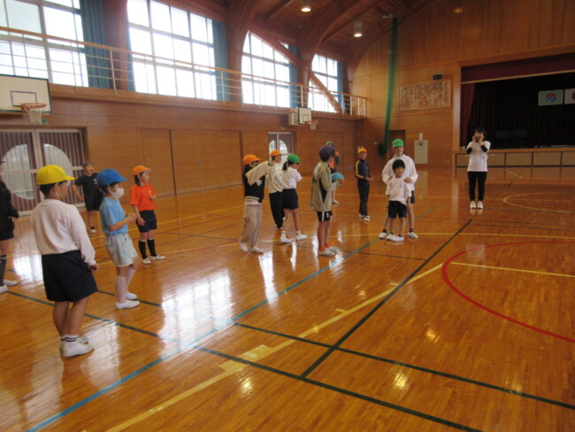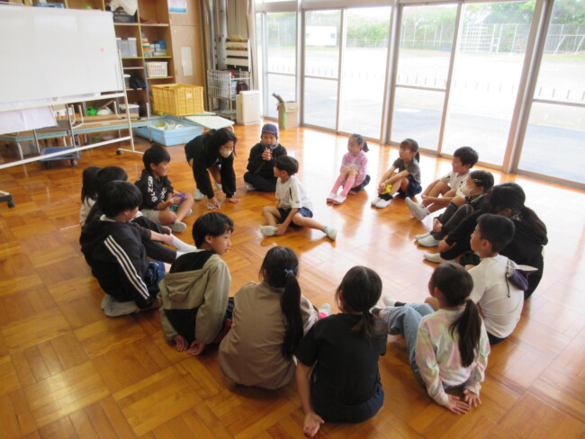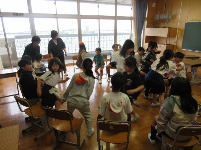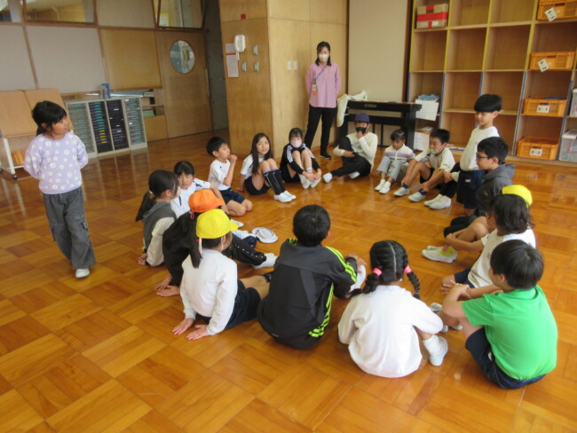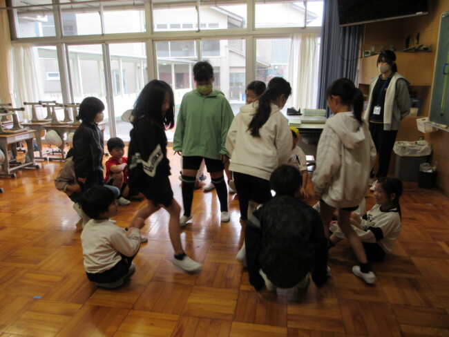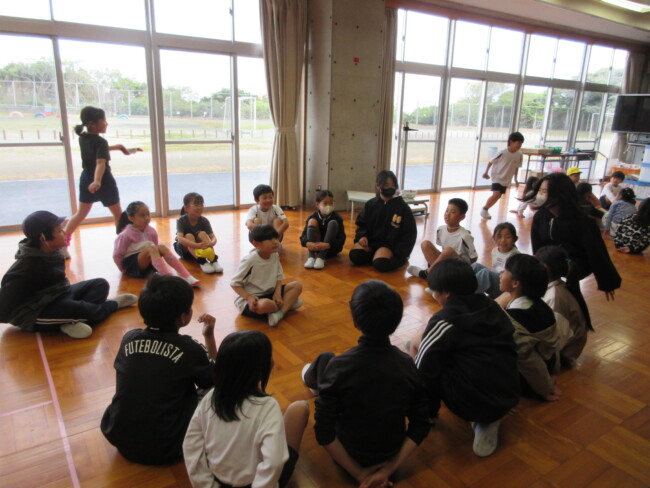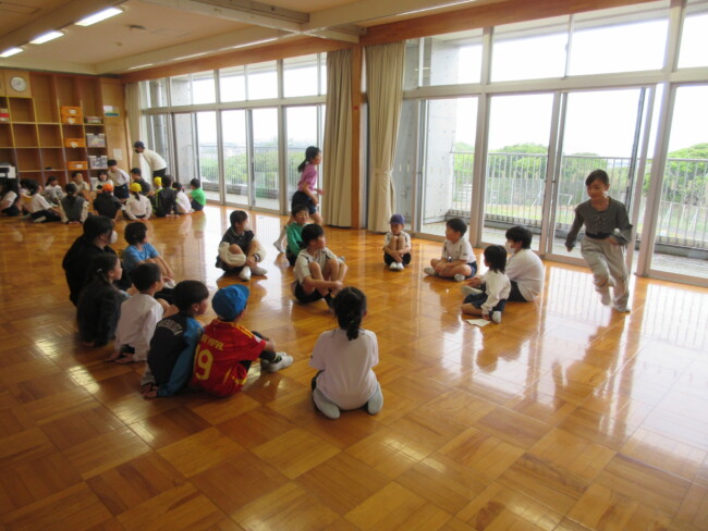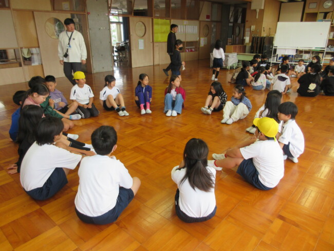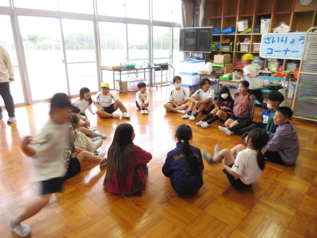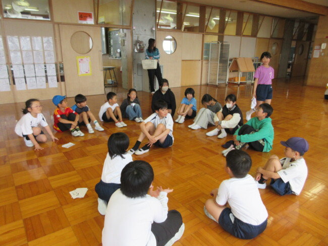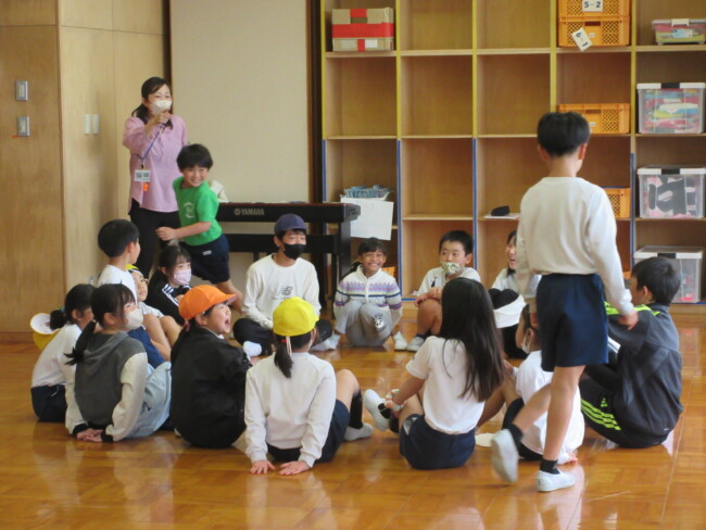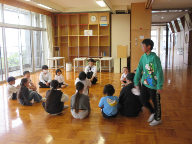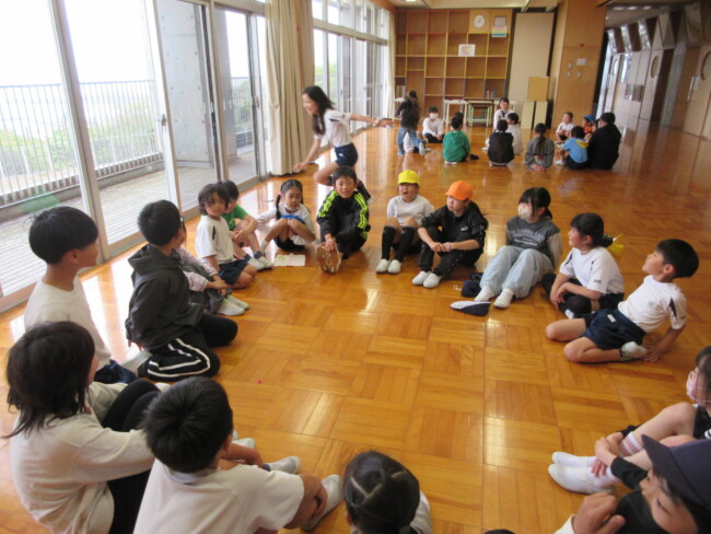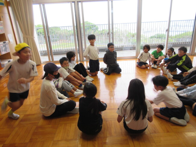 今日の昼休みはほかほか遊びでした。ほかほか遊びとは、縦割りでグループをつくり、一年生から六年生まで一緒に遊ぶ時間のことです。あいにくの雨のため室内でのほかほか遊びでしたが、ハンカチ落とし、フルーツバスケット、ドッジボールなどを行いみんなで楽しい時間を過ごしました。